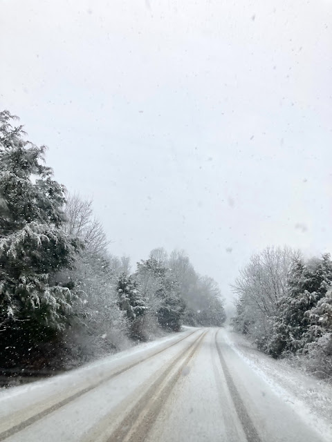 The snow a couple of weeks back! This was what it looked like by the time we almost made it home. It came down so quick.