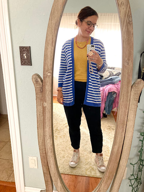 It hasn't really been cardigan weather yet but this day I decided to go for it anyway. My shirt says "Big Book Energy".